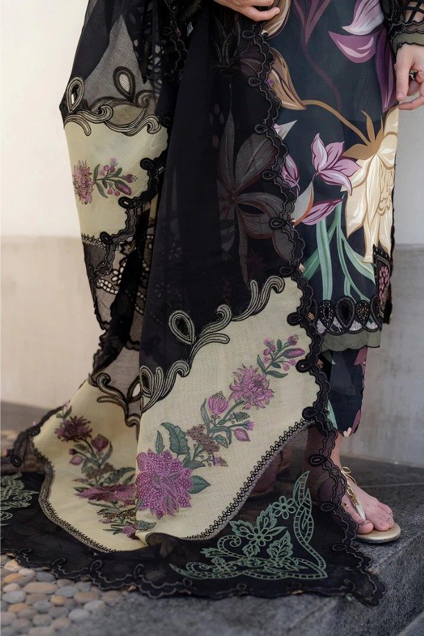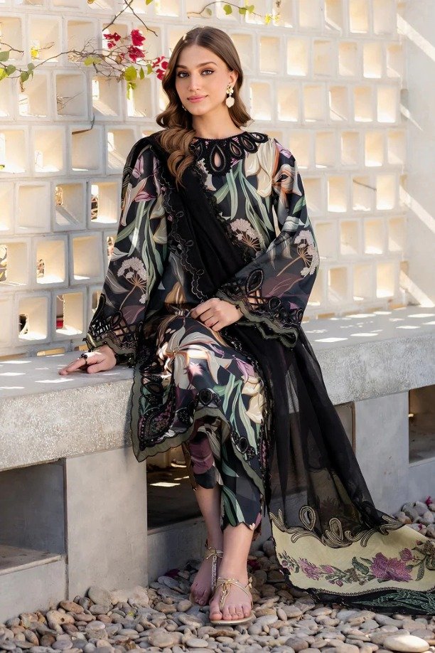 BAROQUE Luxury Lawn Collection Hit Code Available On Fine Quality 90/70 Lawn With Chiffon Cut Work Dupatta