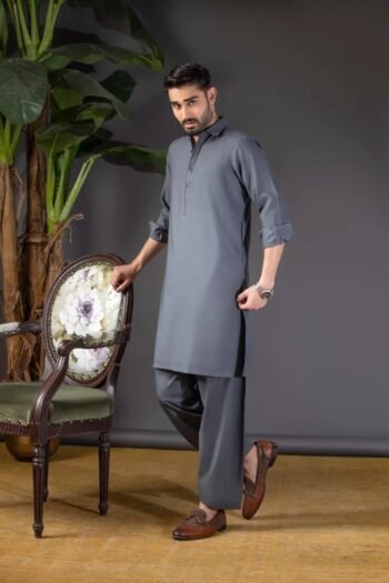 The Jet balck Wash and Wear Four Season Collection from Al Amir Fabrics will enhance your outfit. These chic, carefree suits are ideal for any occasion and were created for the modern guy. Whether you’re at a wedding, corporate function, or informal get-together, these long-lasting and comfortable garments are made from premium fabric.